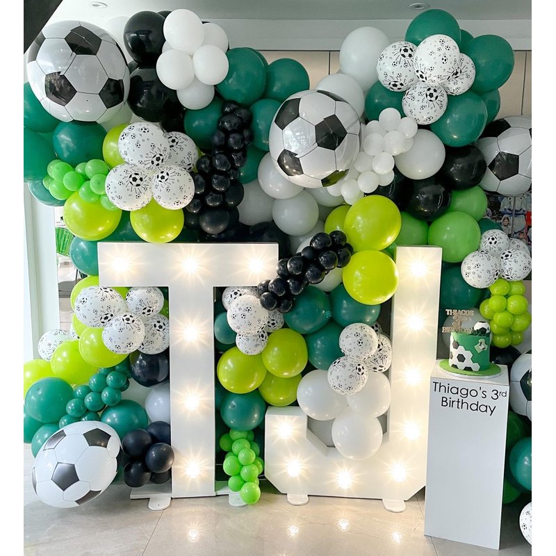 Our Green and White Balloons set offers a captivating color palette. The vibrant green balloons symbolize growth and vitality, while the black balloons add a touch of mystery and contrast. The white confetti balloons create a playful and festive element, adding an extra dose of joy to your decorations. The dark green and lime green balloons further enhance the overall visual impact, bringing a fresh and energetic atmosphere to your special event.