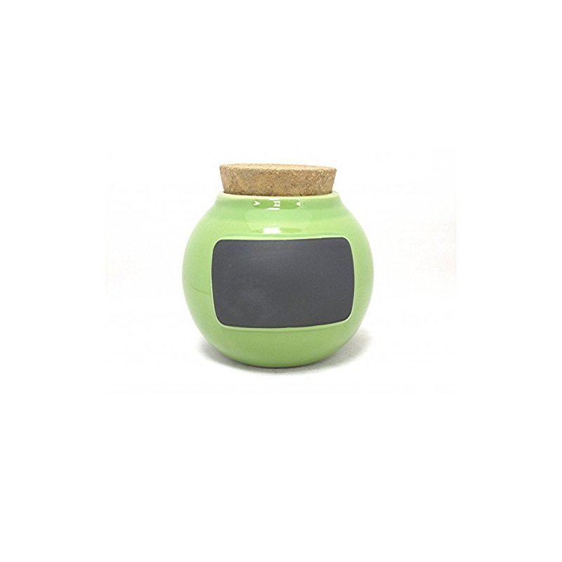 Jar measures approximately 5.5 inches. Chalk board front to write on. Chalk not included. Cork lid is for decoration, does not seal.