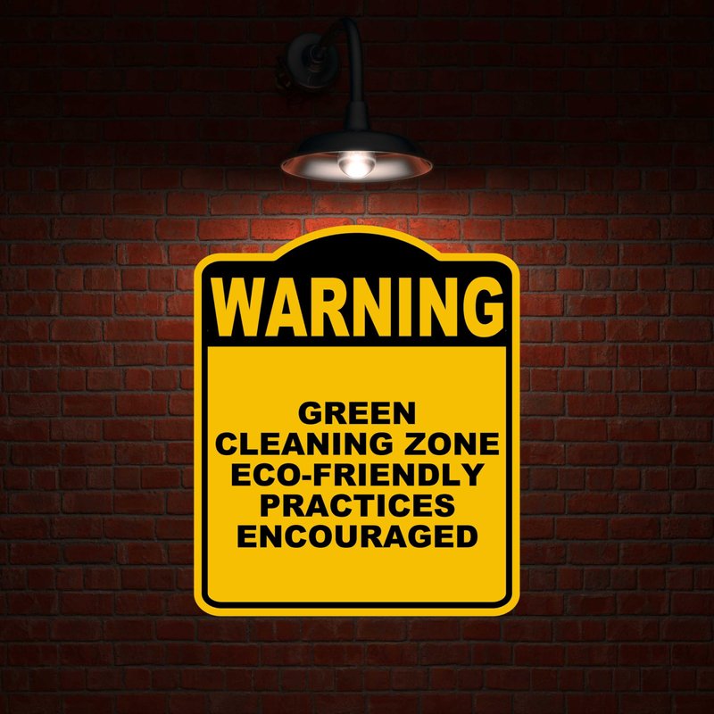GREEN CLEANING ZONE ECO-FRIENDLY PRACTICES ENCOURAGED Warning Yellow Black Aluminum Composite Sign 8.5 x 10 inches