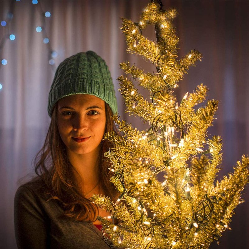 Green Convenience Christmas Lights 33ft 100 LED Battery String Lights with Timer Memory Function USB or Battery Powered Waterproof String Lights for Indoor Outdoor Decoration (Warm White)