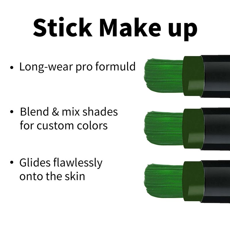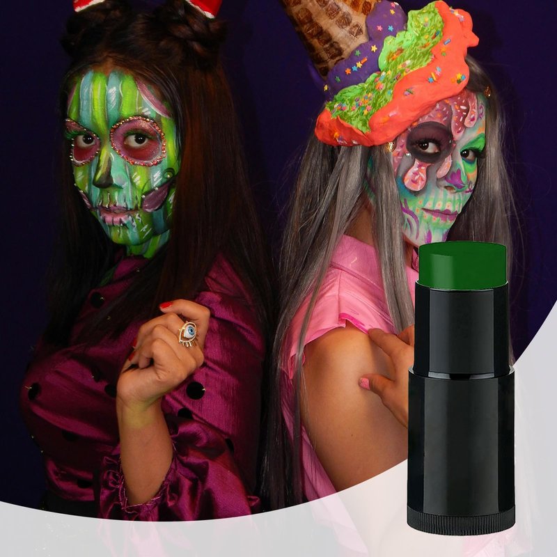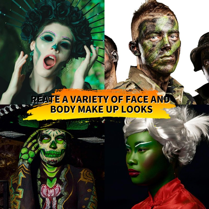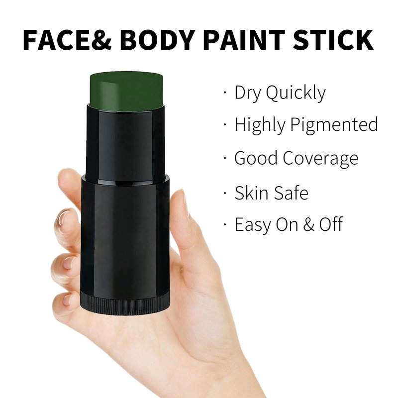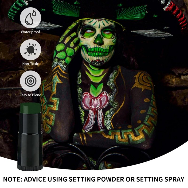 - HIGHLY PIGMENTED FULL COVERAGE - The green Body Paint Stick has a fine texture and smooth application, a little goes a long way.Remember oh, if you want to keep your neon face paint makeup longer, halloween skull stick set is highly recommended to use setting powder to set your makeup to extend the longevity of your makeup. As face paint is an oil-based product, makeup full face is highly recommended to set the makeup with translucent powder and setting spray to prolong the longevity of the makeup and avoid transferring and smudging to prolong the longevity and integrity of the makeup