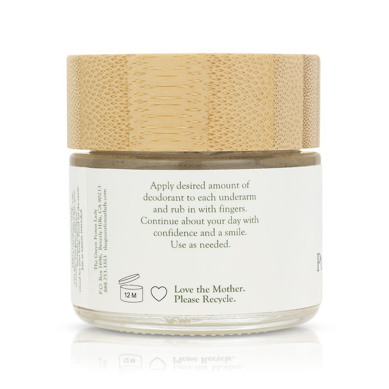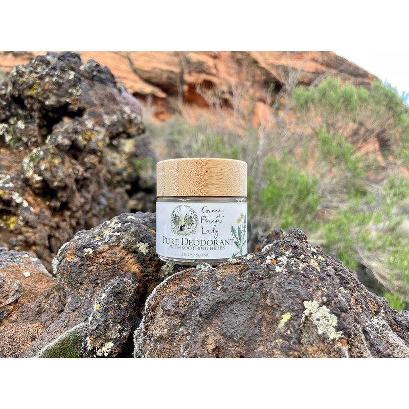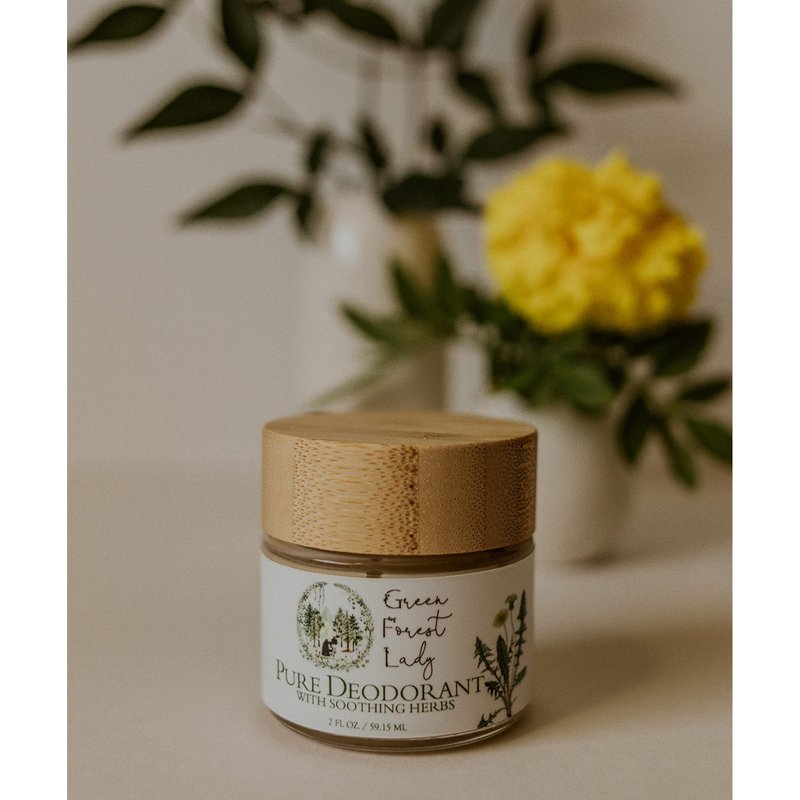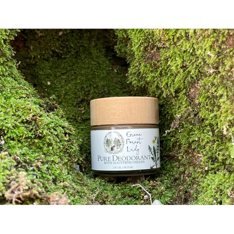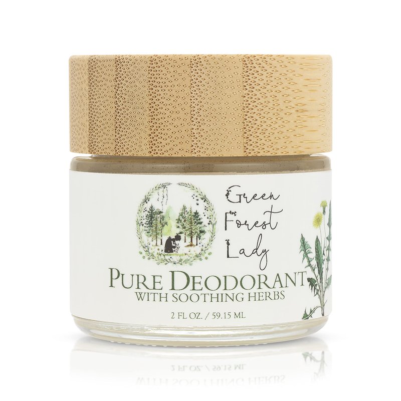 - The Green Forest Lady's Pure Deodorant comes in the beautiful, classic Green Forest Lady glass jar with a natural, bamboo lid. It is a cream deodorant, which means it is softer and creamier than deodorants in push up containers. To apply, use fingers to scoop out a small amount and then gently massage into the armpits.
