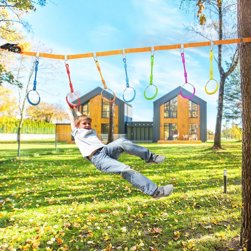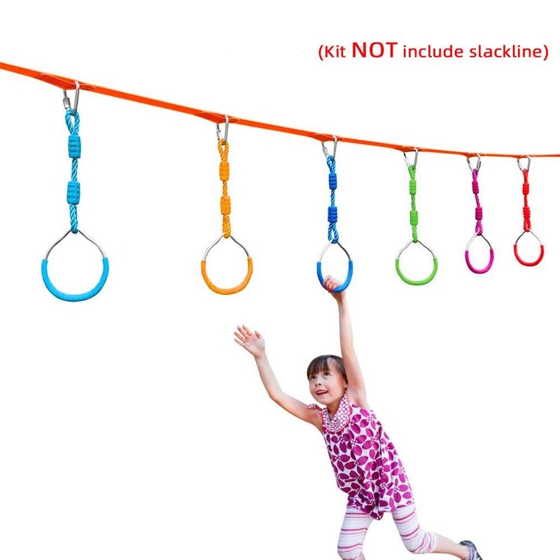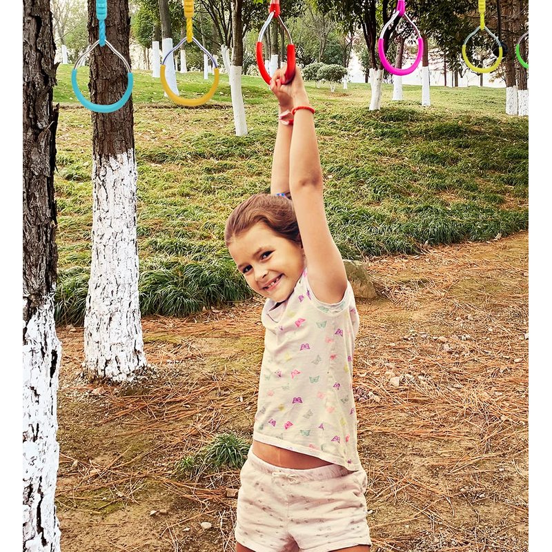- JUNGLE GYM - ANYWHERE USE★ Play our swing gymnastic rings on your backyard, playground, outdoors, indoor, home gym, pool, fitness class, party, camping trip, beach, park, jungle gym playset and anywhere, could set it up in play room and use outdoors when camp or backyard. This kids obstacle course ring, perfect for all occasions.