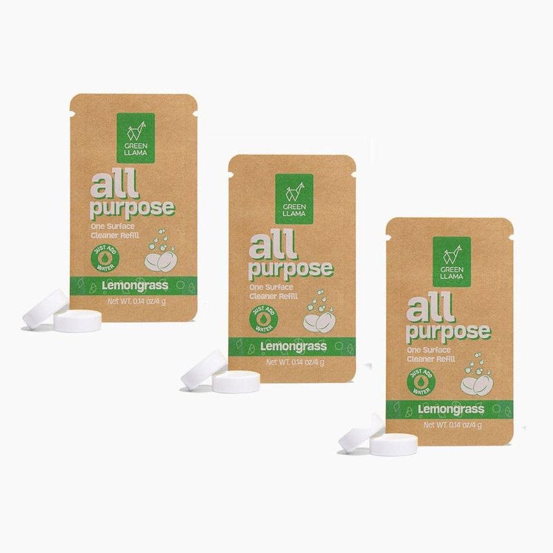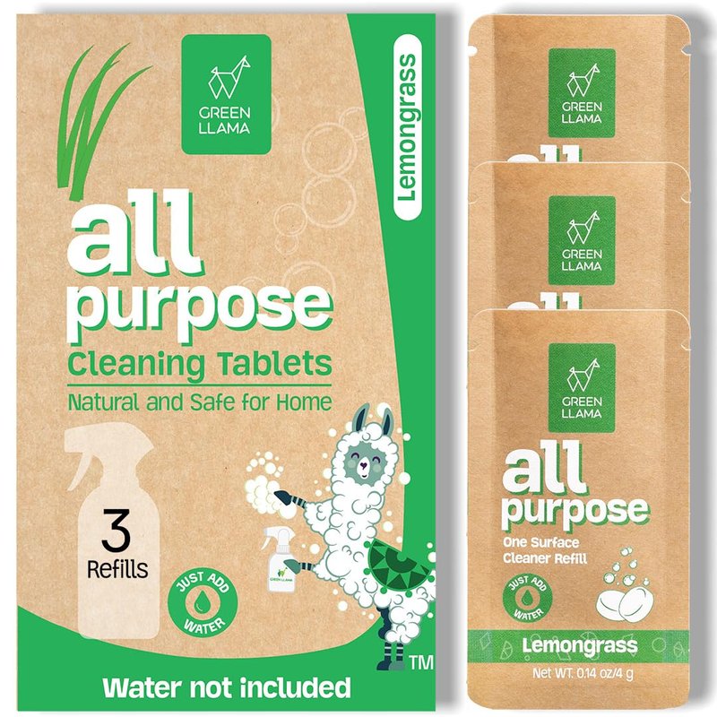 Green Llama Eco-Friendly and Sustainable All-Purpose Refill Tablets | 3-Pack | Lemon Grass Scent | Natural Cleaning Solution for Home with Certified Compostable Packaging