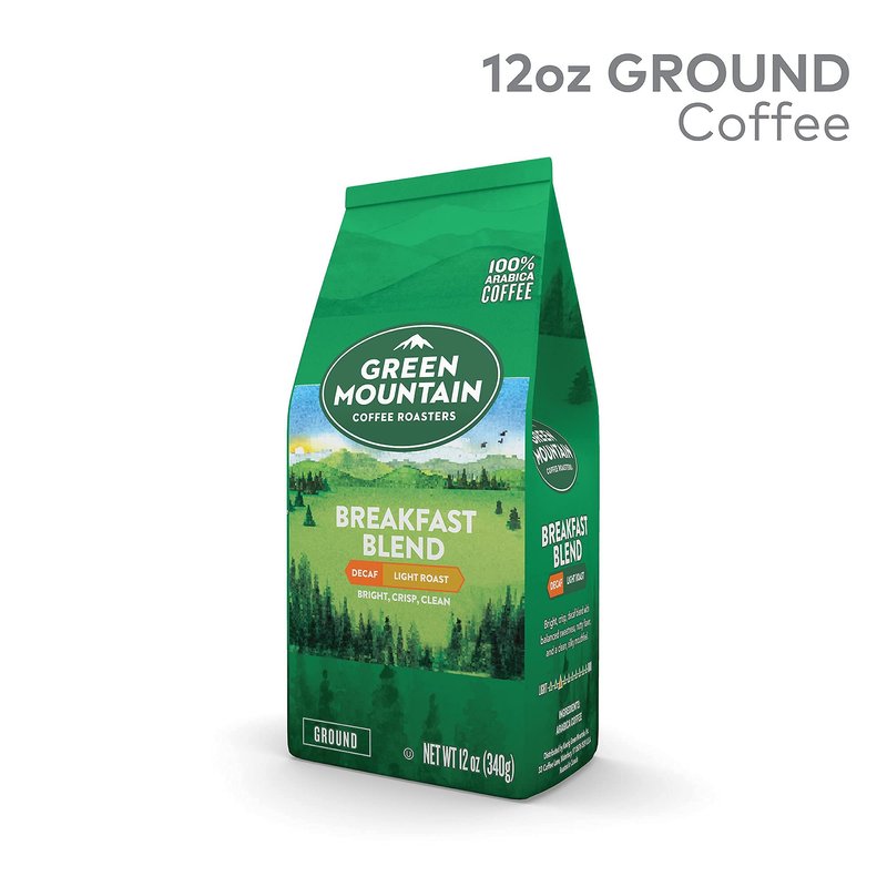 Green Mountain Coffee Roasters, Breakfast Blend Decaf, Ground Coffee, Decaffeinated, Light Roast, Bagged 12oz.