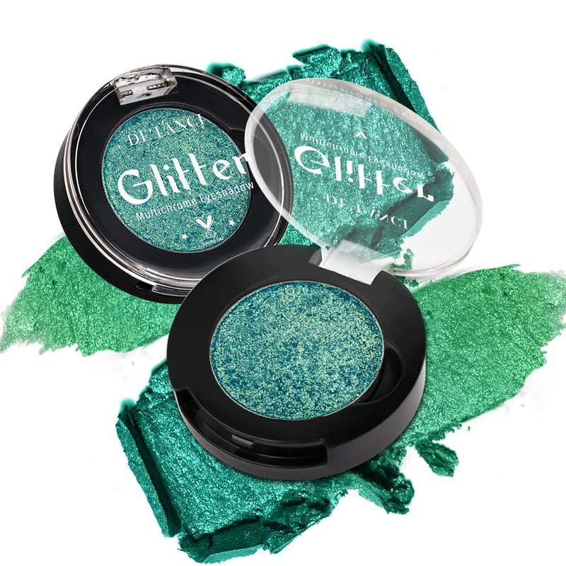 - ❤【Rich and Vibrant Shade】:Glitter bright & vibrant metallic chameleon single eyeshadow is surper bright. Long-wearing colour with a luxurious unique tonal finish.The shade Aurora is jade green with green shimmer.Good for a night out or when you want a dramatic eye color.