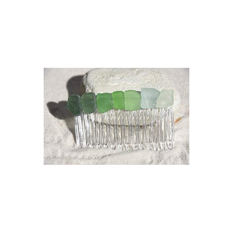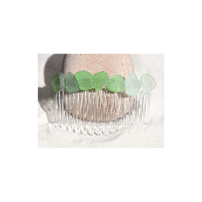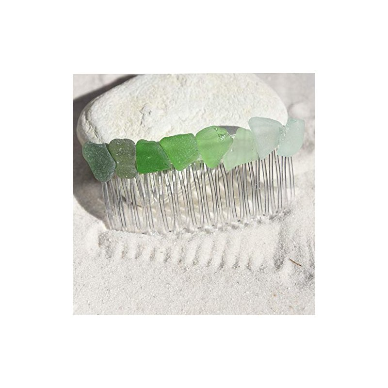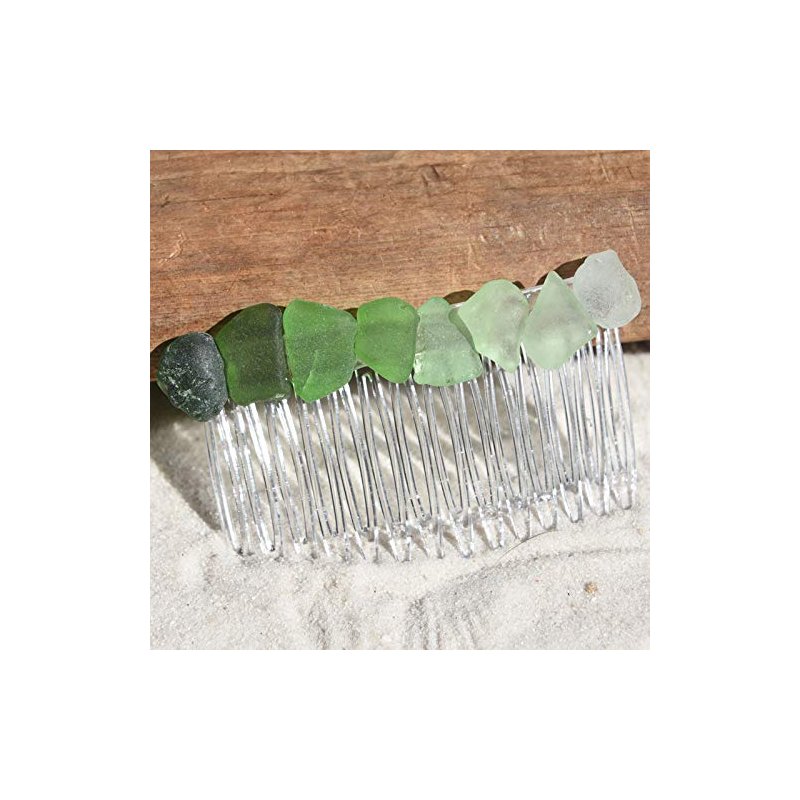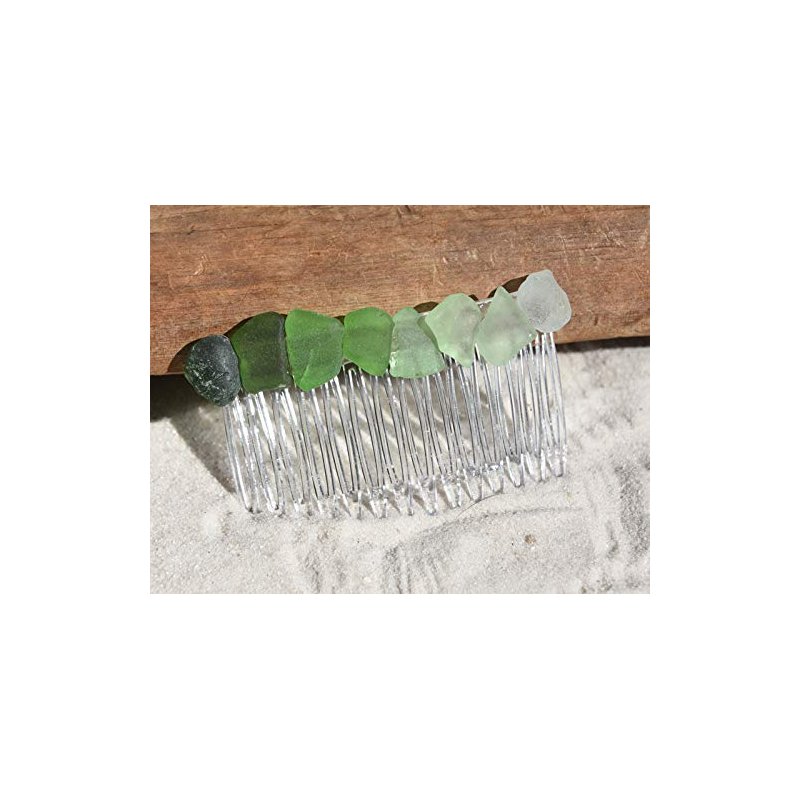Authentic green sea glass hair comb made to order. The green beach sea glass adorns acrylic a hair comb. The comb is perfect for a beach wedding or just frolicking in the surf, or a day out at the beach. The sea glass is genuine frosted green sea glass. The hair comb is hand made, and each piece of sea glass was carefully selected to create a stunning hair comb. The green coloring found in this piece is unique and bright. The sea glass is genuine and was collected on the rocky shores and sandy beaches of Casco Bay, in Coastal Maine. The sea glass has a lovely natural frosted surface as a result of the glass being tossed about the waves and ocean shores for a number of years. The hair comb is made in the USA. They come from a smoke free environment. The hair comb measures: 67 mm x 41 mm or 2.65 inches x 1.6 inches