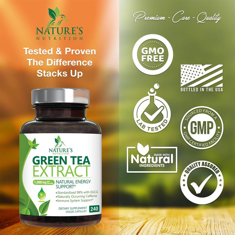 - Premium Green Tea Extract: Nature's Nutrition Premium Green Tea Extract contains a green tea blend (with 98% Egcg, Polyphenols and Antioxidants) for energy and immune support in Men and Women