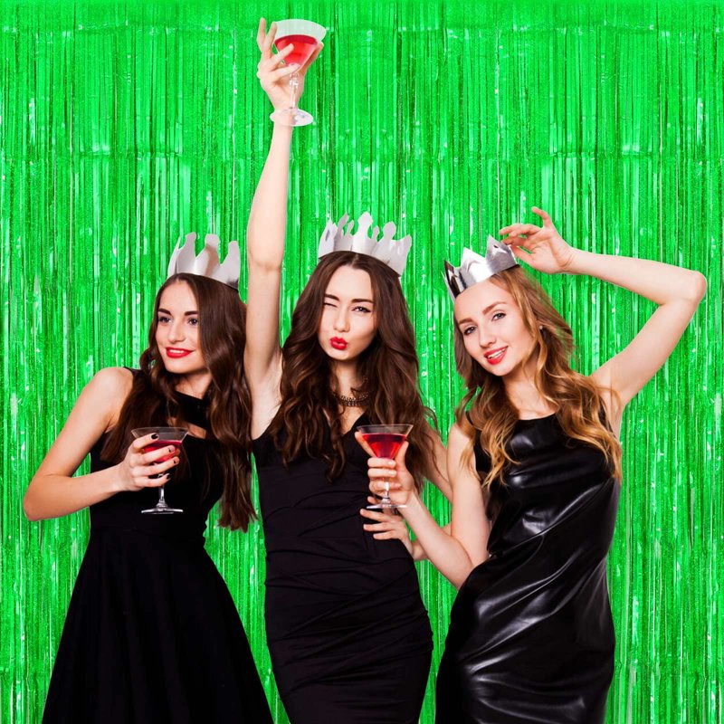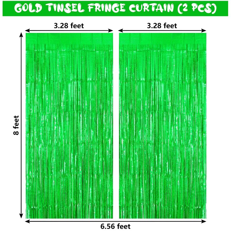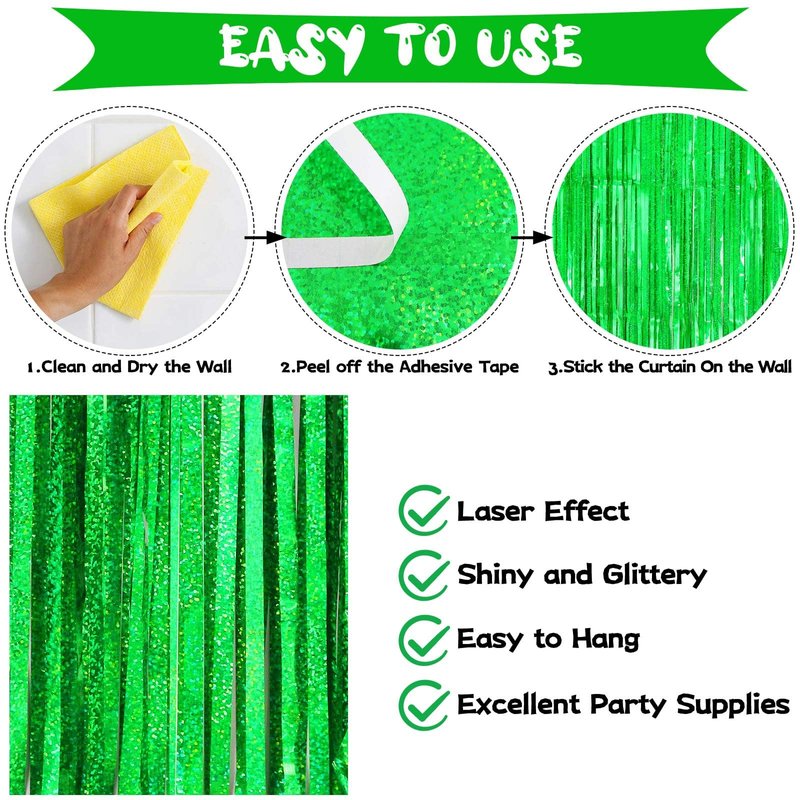 - PACKAGE CONTAINS: This package contains 2 pieces green tinsel fringe curtain, the size of each curtain measures approximately 3.28×8 feet, totally 6.56×8 feet. Ideal size and bright color are perfect for your party decor.