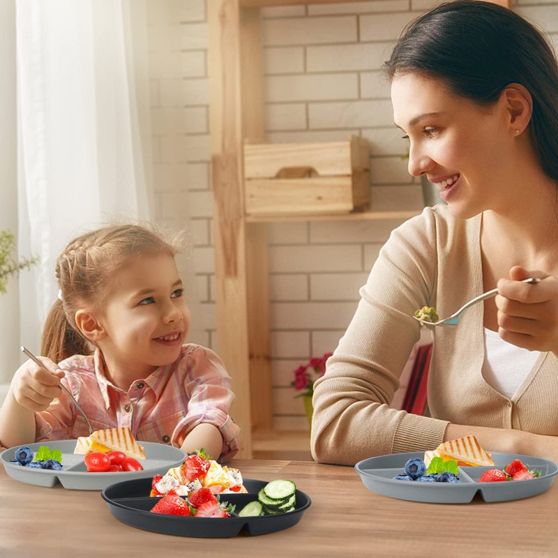 - PORTION CONTROL PLATES: 3 compartments are ideal for portion control and provide a balance of healthy foods. Suitable for all age groups including kids, adults and elderly for daily meals, especially for people who want to stay in shape or lose weight.