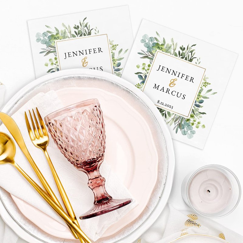 - Includes: 100 personalized wedding or anniversary napkins.