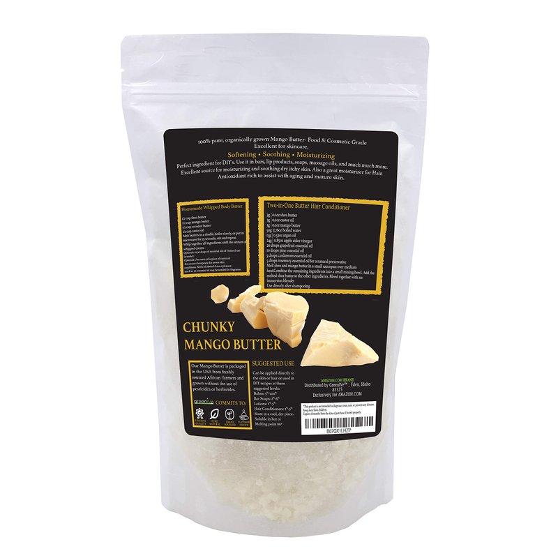 - USES: GreenIVe Mango Butter is Food Grade and can be used in a variety of ways. Use for DIY soaps or lotions. Comes in a variety of options for your personal needs. 8 Ounce Jar, 16 Ounce Jar, or 1 Pound Crumble