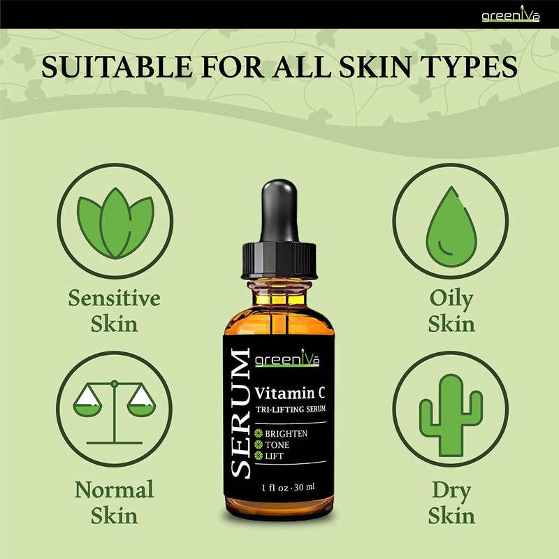 GreenIVe Vitamin C Serum Tri-Lifting Serum with Hyaluronic Acid, Vegetable Collagen & Leucidal