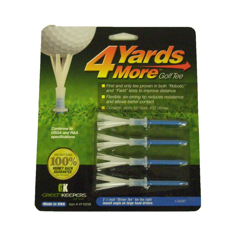 Greenkeepers 4 More Yards Golf Tees (4pk, 3 1/4" Blue) New