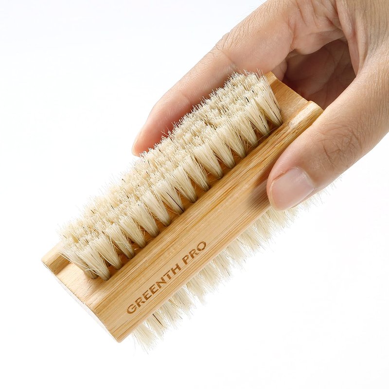 GREENTH PRO Bamboo Boar Bristle Nail Brush-3PCS Wooden Nail Scrub Brush for Toes and Nails,Cleaning Nail Brush