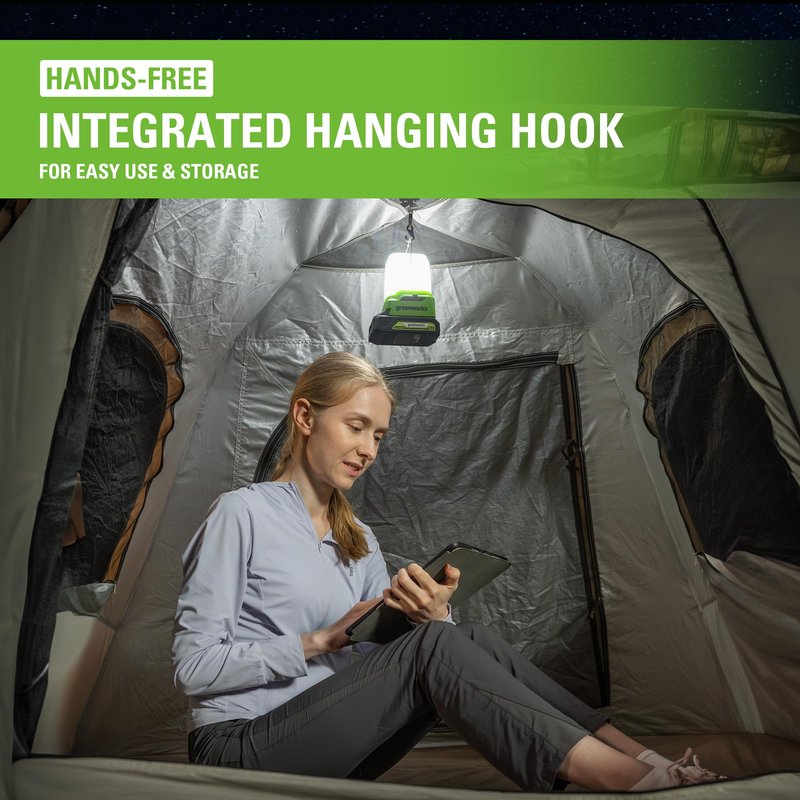 Greenworks 24V Lantern Cordless 500lm Camping Light with USB-A and USB-C Port, tool only