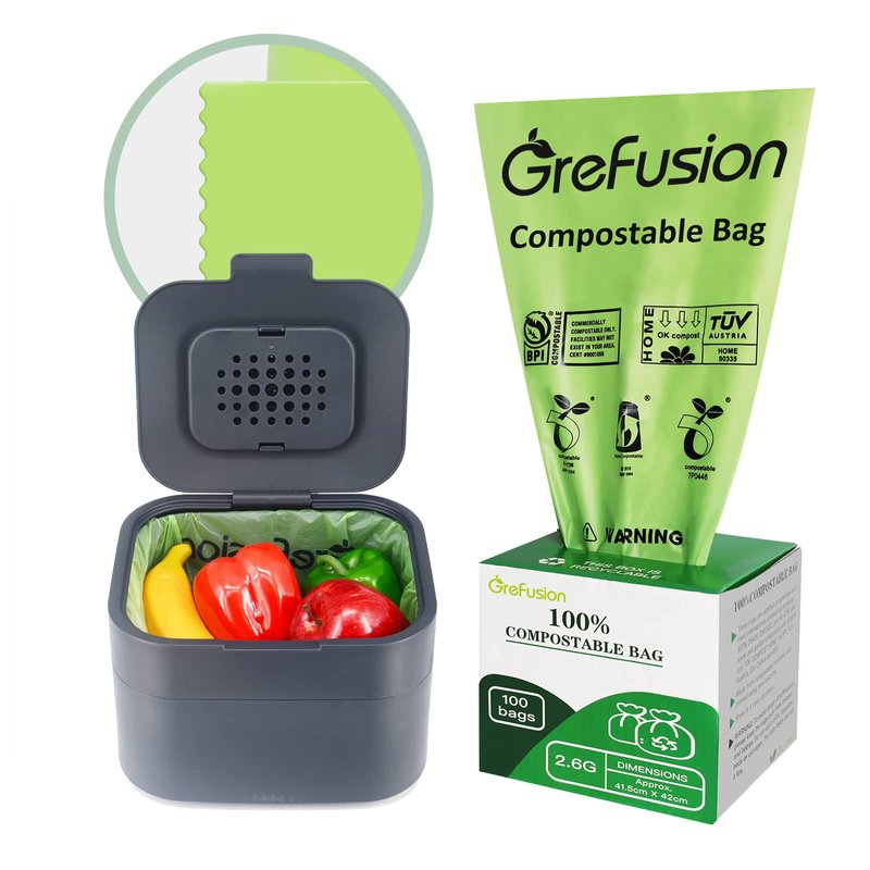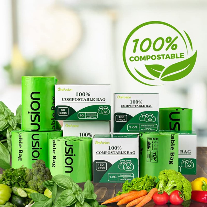 - 🌎【FIT TO MOST SMALL TRASH CANS】Custom GreFusion compost bags 2.6 gallon are tailored to fit compatible small trash cans perfectly with bigger size than others brand,so they don't slip, and they stay neatly hidden when the trash can lid is closed.Perfect fit in bathroom trash can,kitchen trash can,car trash can,trash can with lid.