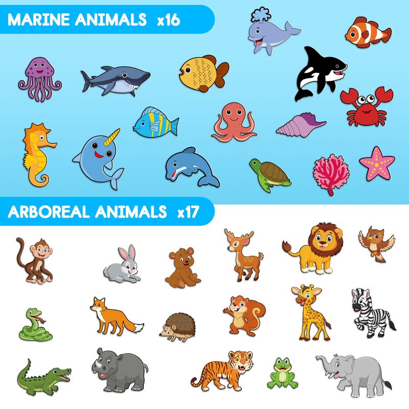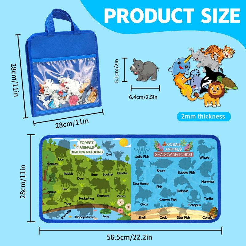 - 【Value Package】The Animal Matching Cards package includes a blue full ocean felt story board, 16 ocean animal cards and 17 forest animal cards. The blue backdrop features a PVC pocket design and handle for easy carrying and storage of the cards.