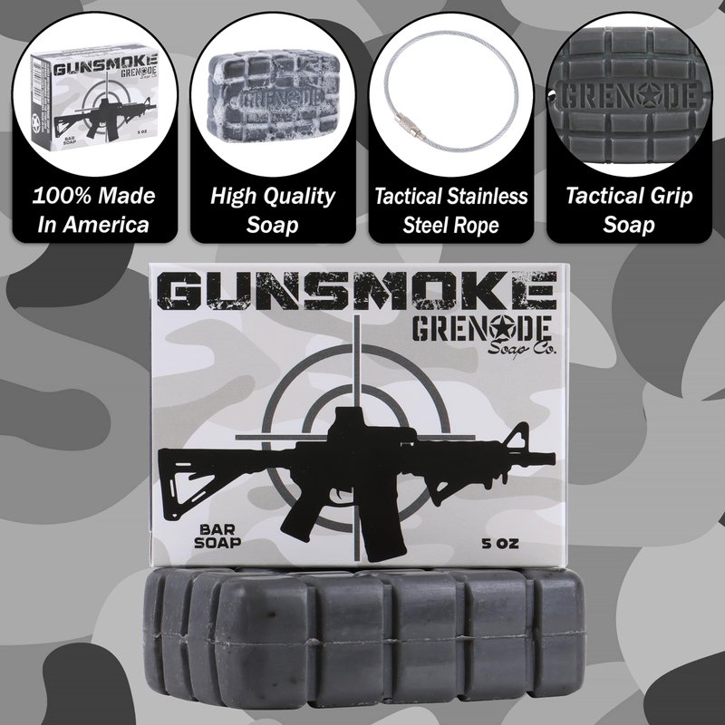 - REVOLUTIONARY CLEANSING Experience a new era in men’s grooming with Gunsmoke Bar Soap. Bring a fighter’s tactical precision to the mission of bathing. Our soap is free from harmful sulfates or parabens. Sold as a set of 4 bars.