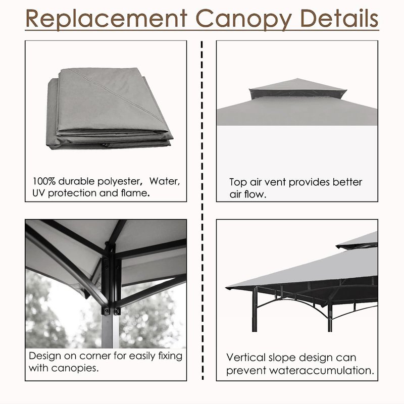 - 【Special Design】 - The grill canopy top has two different pockets in each corner so you can make it fit for your grill gazebo. Double tiered top design not only improves the ventilation, but also enhances the stability of the canopy cover.