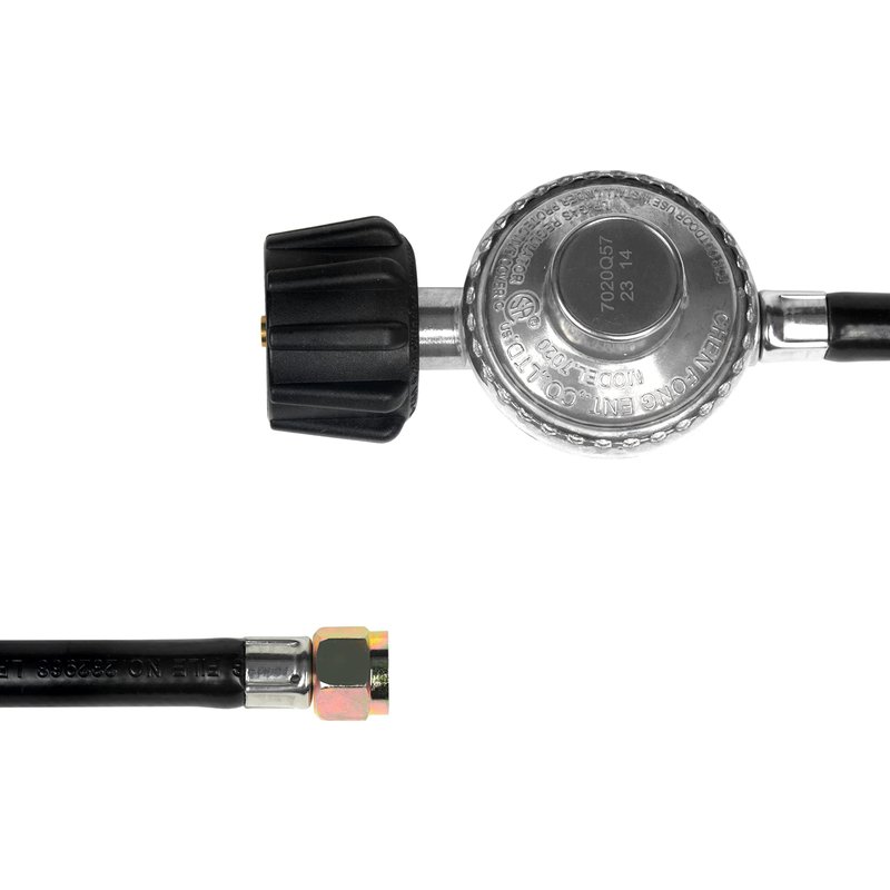 - This propane regulator hose has excess flow protection, The Outlet Pressure of the regulator is 11"W.C(1/2 PSI),It will automatically shut off when abnormal pressure is detected.Keeping flow stably and at appropriate levels,Protect you from danger.
