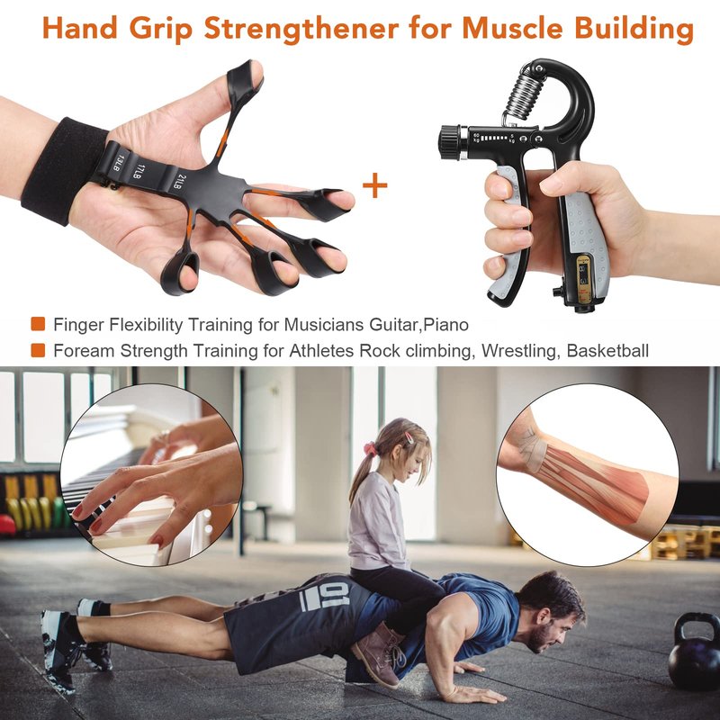 - Athletes and Musical Instruments: The grip strength trainer kit is perfect for improving power and flexibility in the wrists, fingers, and forearms. PERFECT GIFTS for Rock Climbers, Tennis Players, Guitar, Piano, Drummers & Musicians