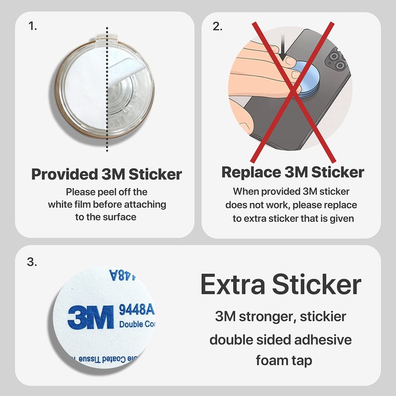 ✔️ Strong & Repositionable adhesive - The phone allows you to install the accessory easily onto your device with 3M sticker. Once it’s attached, it provides a secure and reliable hold. This adhesive is reusable. In case you want to reposition or transfer the grip, you can freely do so, thanks to the adhesive. Our phone mount is washable, too!