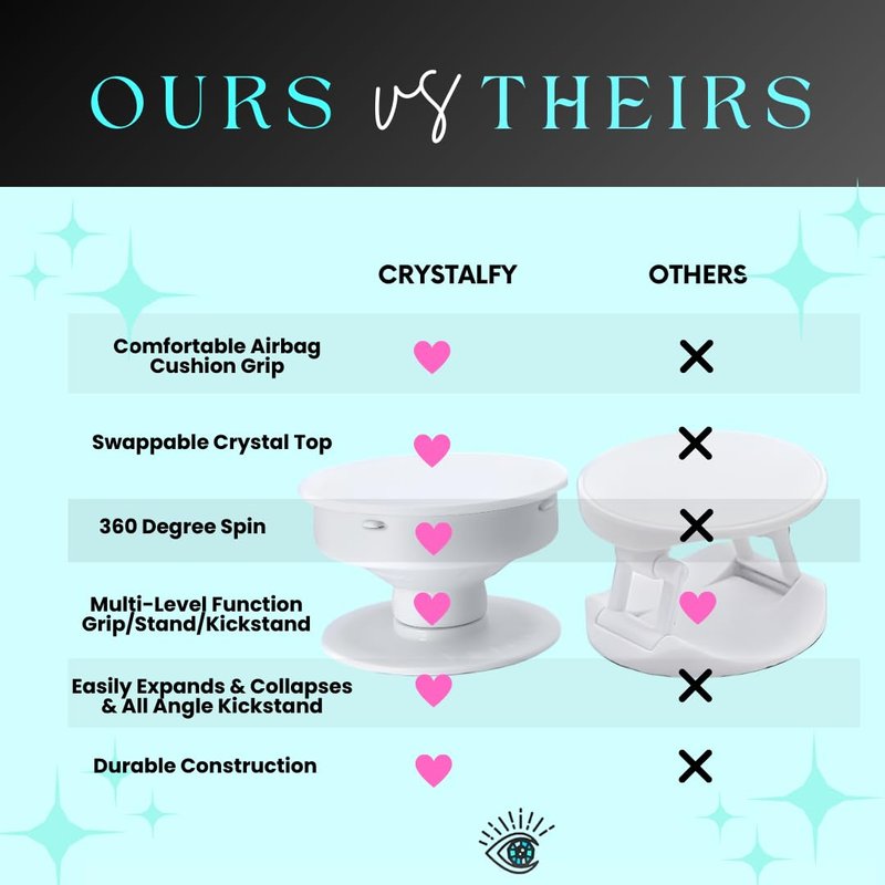 - 🖤SHOP OUR FULL COLLECTION: Visit our storefront to shop a wide variety of swappable crystal phone grips in unique designs.