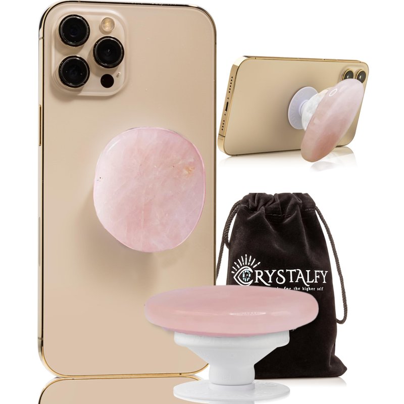 A back of phone gripper with the healing power of NATURAL CRYSTALS! Unleash its power while holding and carrying your cell phone around everywhere you go! CRYSTALFY has designed our exclusive 360 degree rotating phone back of phone gripper with a soft material gripper for a comfortable ergonomic hold that easily expands and collapses with a kickstand feature for when you don’t want the cell phone grip fully expanded. And our phone grip has a SWAPPABLE crystal top that is a 100% REAL AUTHENTIC gemstone. Switch your CRYSTALFY crystal top with any of the crystals in our crystal phone grip collection. Our crystal cell phone grips come home to you reiki cleared and charged with pure intentions, crystal healing energy and positive vibrations that promote self love and self care in order to uplift and elevate your highest good. The benefit of this results in a clear and positive energy field bringing physical, emotional and spiritual balance. That’s some serious next level multi-tasking that you can’t get from any other cell phone grip!