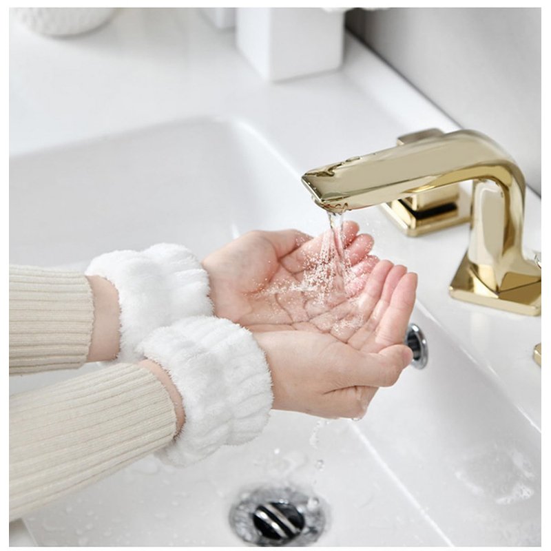 The makeup headband for washing face and face wash wristbands can be used for face washing, hand washing, makeup, skin care, shower, reading, doing housework.