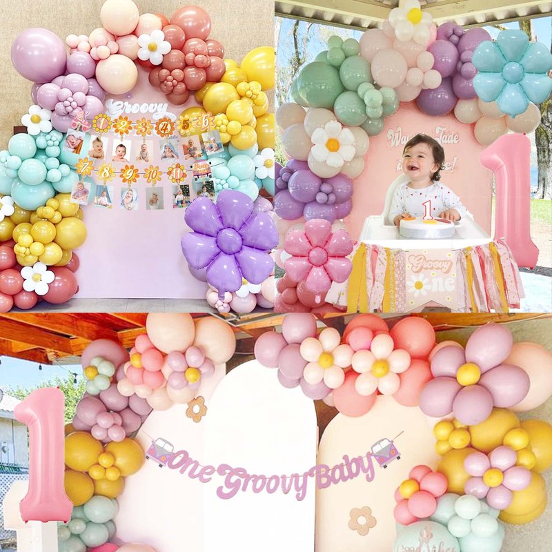 - 🎂Groovy One Birthday Decorations:Make your little one's first birthday a groovy birthday celebration with our "One Groovy Baby" 1st Birthday Party Decorations Kit. This kit features a retro hippie boho daisy groovy balloon arch garland in vibrant and pastel macaron colors. The exquisite daisy flower balloons and 40in big number "1" foil balloons add a delightful touch. Get ready to turn heads and create a memorable baby party atmosphere that will capture everyone's attention.