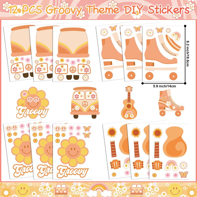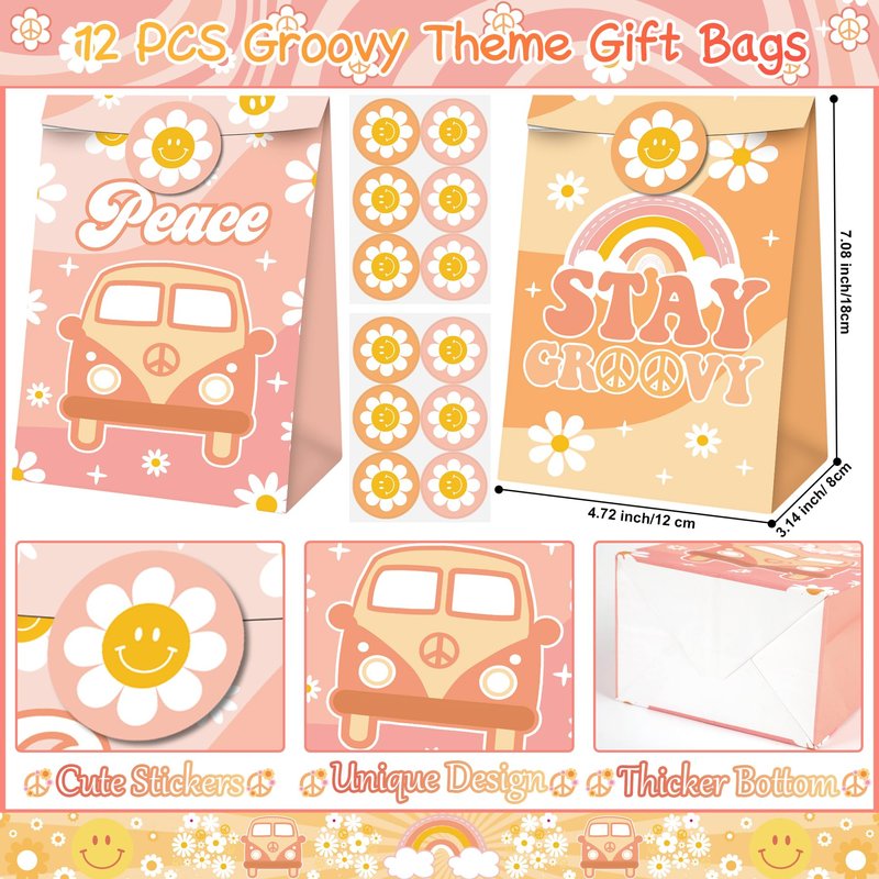 - UNIQUE DESIGN - This party favor adds a lot of classic groovy elements, such as daisy flowers, rainbows, peace signs, hippie bus, butterfly, victory sign and more, which will capture the hearts of kids. This party favors will create a retro hippie theme atmosphere and leave an unforgettable memories for your guests!