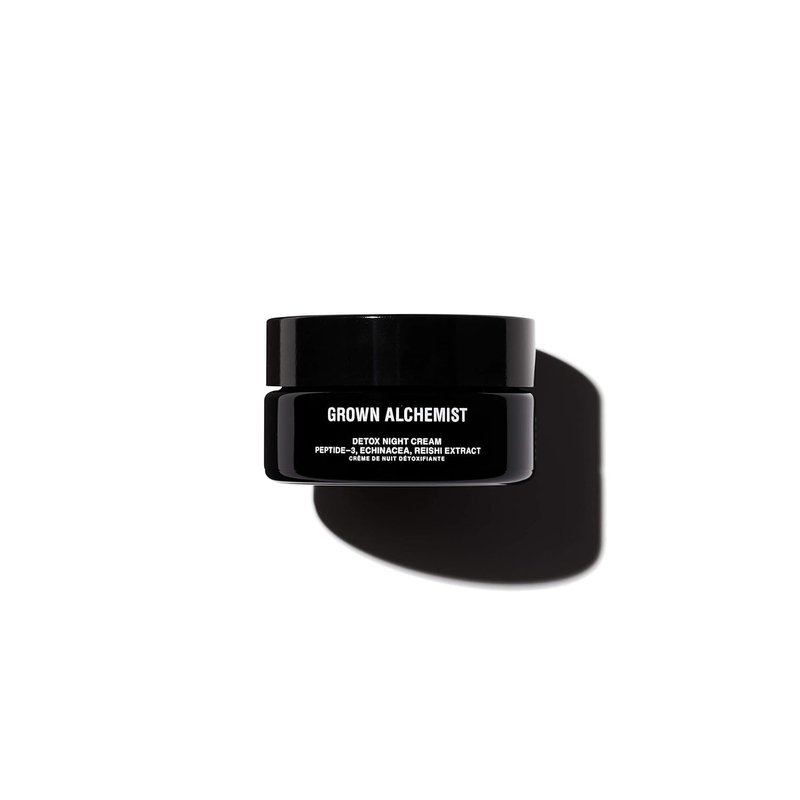 GROWN ALCHEMIST NIGHT DETOX CREAM: This advanced detoxifying night cream is formulated with a complex blend of Peptides, Echinacea, Vitamins, Hyaluronic Acid, and Essential Omega Fatty Acids, that detox and regenerate the skin, reducing the appearance of fine lines and wrinkles, resulting in radiant and youthful-looking skin. Offering a blend of Bioactive Ingredients including Echinacea pure plant concentrate neutralizing the effects of pollution; boosting Hyaluronic Acid levels and smoothing fine lines and wrinkles. Reishi Mushroom Extract potent polysaccharides noticeably detoxify. Peptide-3 active stimulates Collagen Type IV and Collagen Type I production. In addition, Peptide-3 active also noticeably increase cohesion and stabilization of collagen.