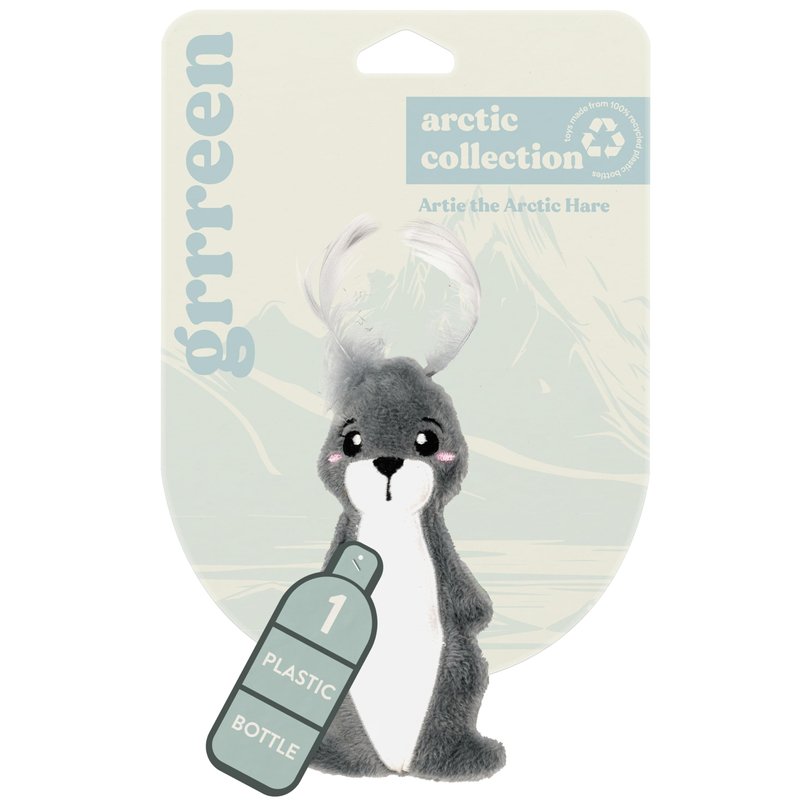 GRRREEN Stuffed Animal Cat Toy | Arctic Collection | Feather Arctic Hare Toy for Indoor Cats | Cute Interactive Plush Toys for Swatting & Playing | Made of Eco-Friendly & Recycled Materials - Go Green