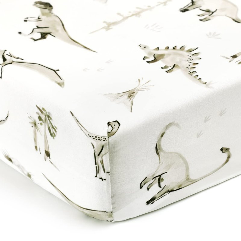 - Apple It Within Seconds: Thanks to the elastic bottom, our fitted crib sheet comes in a classic, the stylish watercolor dinosaur and olive pattern pattern that will put the finishing touches to any bedding. These crib sheets for girls give your darling a serene and calm bed to rest in.