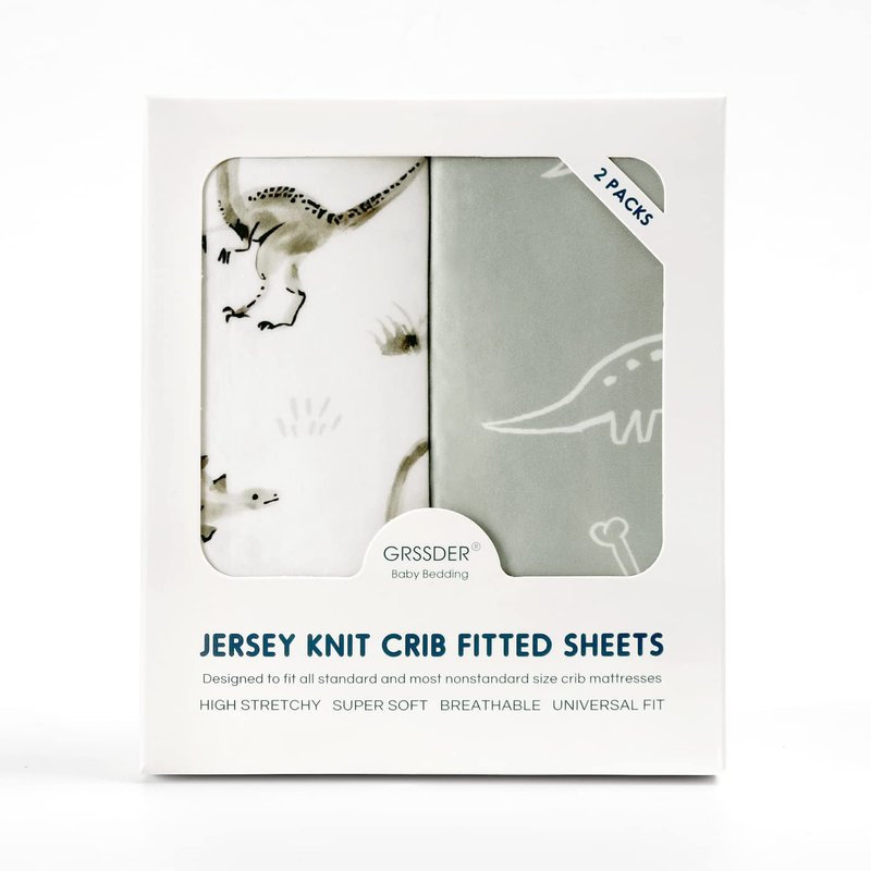 GRSSDER Stretch Ultra Soft Jersey Knit Fitted Crib Sheets Set 2 Pack,Fit All Standard Crib Mattress Pads Safe and Snug, Crib Fitted Sheet for Baby, Dinosaur