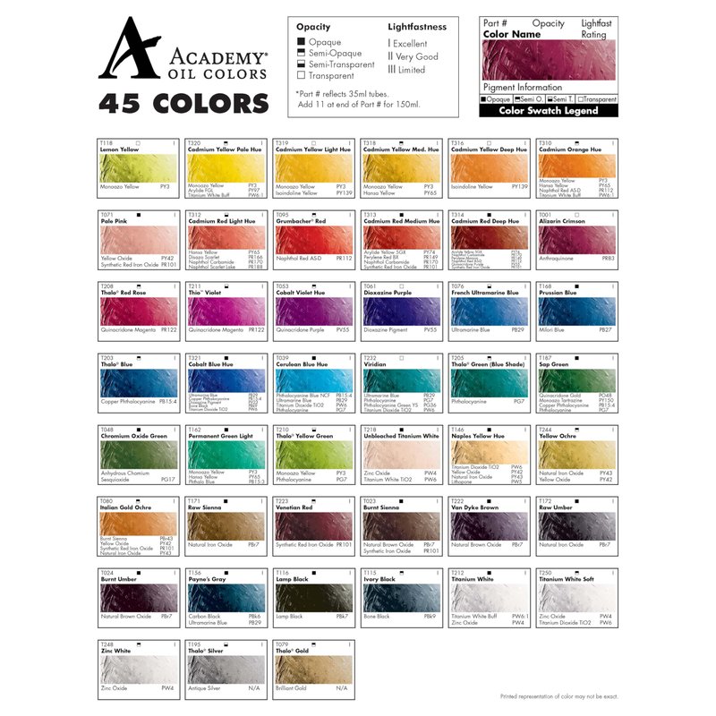 - The non-metallic colors in the Academy Oil student line correlate to the Pre-tested professional line, allowing students to graduate to a professional grade paint with ease