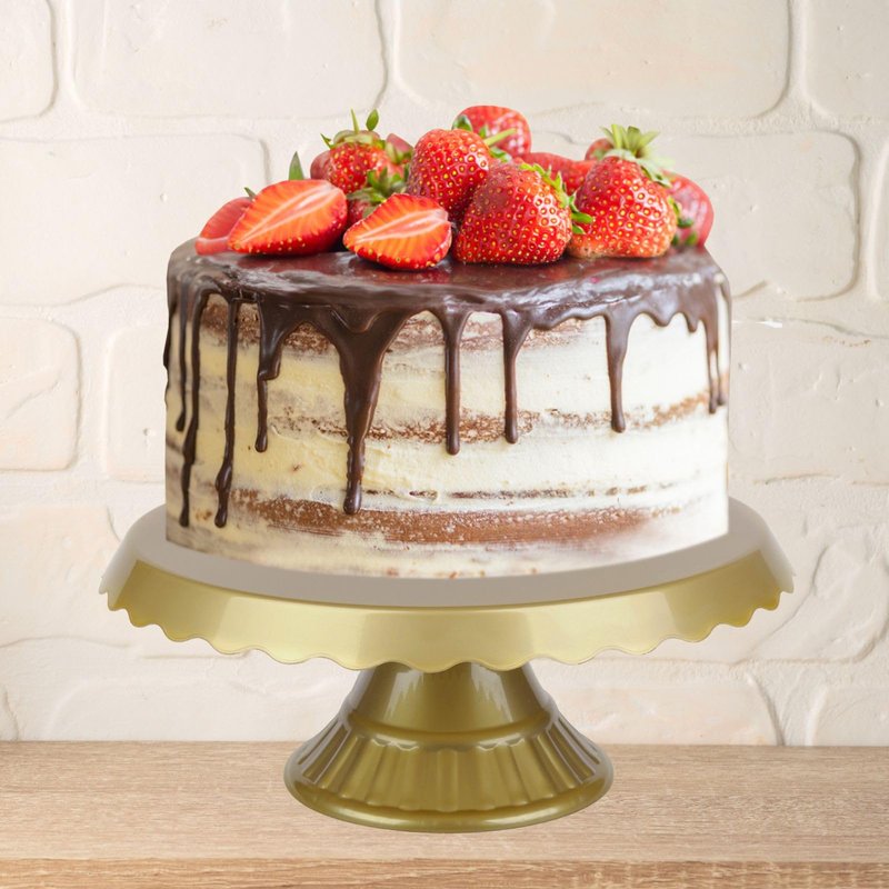 Grupo Mirandinha - Thin Acrylic Cake Stand with Lace - Durable, Modern and Reusable Design for Special Occasions - Gold Finish