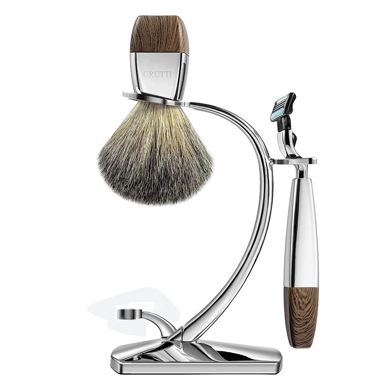 GRUTTI Shaving Brush Razor Stand with Soap Bowl, Safety Mens Razor Holder with Non Slip Base Shaving Kit for Men Boyfriend Husband Dad Birthday Fathers Day Gift