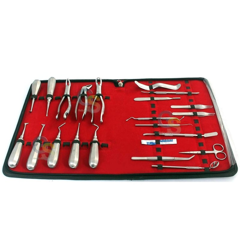 G.S 30 PCS Oral Dental Extraction EXTRACTING Forceps Elevators Mirrors with Scalpel Blades #22