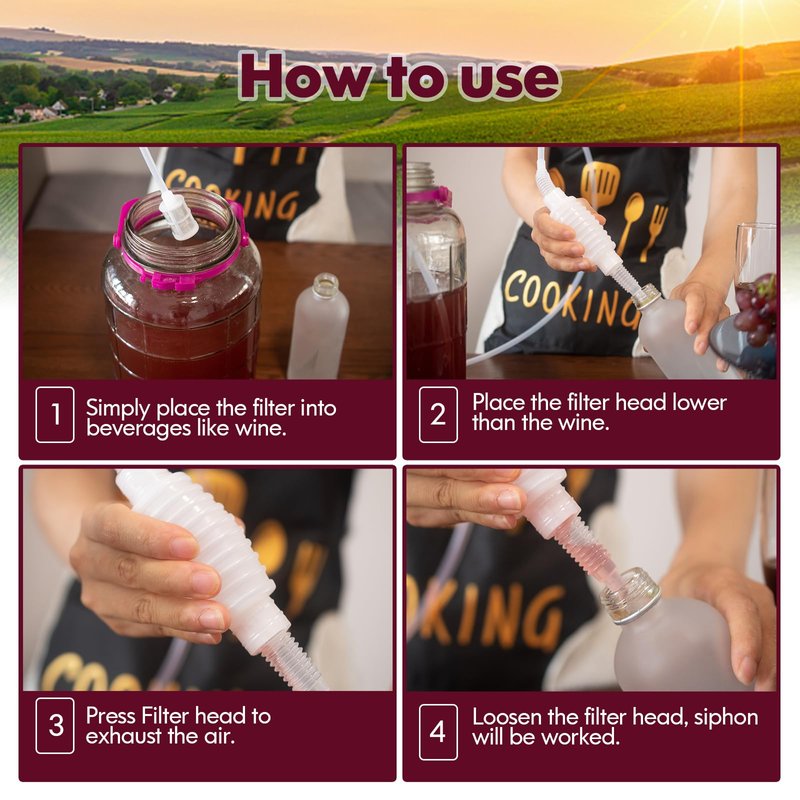 - Experience effortless usability with beer siphon tube, featuring a rapid flow rate. Simply place the filter into beverages like wine, apply pressure to the airbag, and watch the liquid effortlessly flow through the tube.