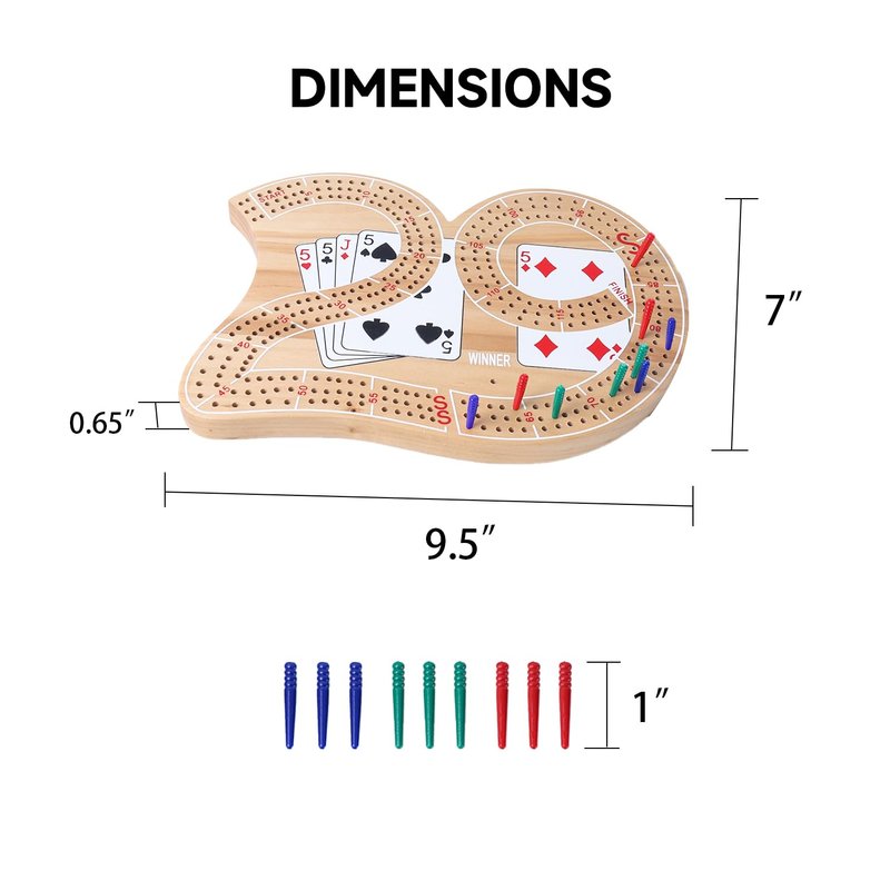 - Material & Size: The wooden 29 cribbage board is made of New Zealand pine, dimensions are 9.5 x 7 x 0.65 inches, three tracks easily distinguish players