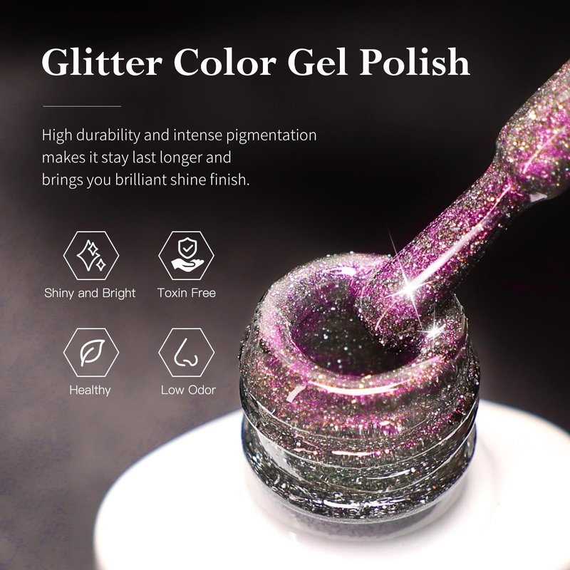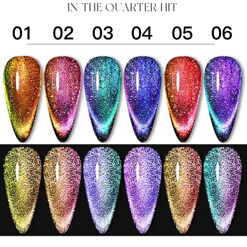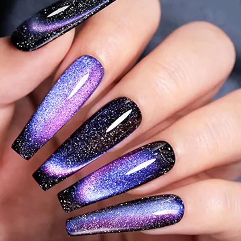 - The Magical Galaxy Nail Effect: The chameleon color reflective diamond cat eye effect, combined with holographic micro-light galaxy effect gel nail polish, brings you an amazing reflective and shiny diamond-like 9D cat eye effect on the nails. Different lighting and angles will create various stunning effects.