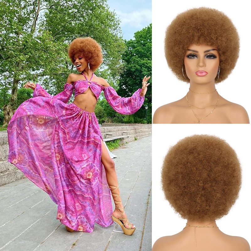 - 【Premium Synthetic Wig】70s afro wigs for black women is made of high quality heat resistant synthetic fiber, which is durable, breathable, and soft. It is ergonomically designed to make it easy to wear. Mimic the natural growth of hair with selected material and advanced craft, looks extremely lifelike and natural,suitable for long term use.