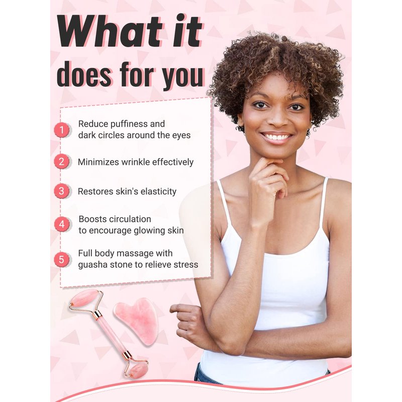 - √ Beauty Skin Care Tools Set - Jade facial roller and Rose quartz Gua Sha stone in the gift box. Roller is ideal for the neck, chin, cheeks, forehead, eyes, nose.You can keep the facial jade roller and Guasha in the fridge.Ice rollers help reduce morning swelling on the skin.