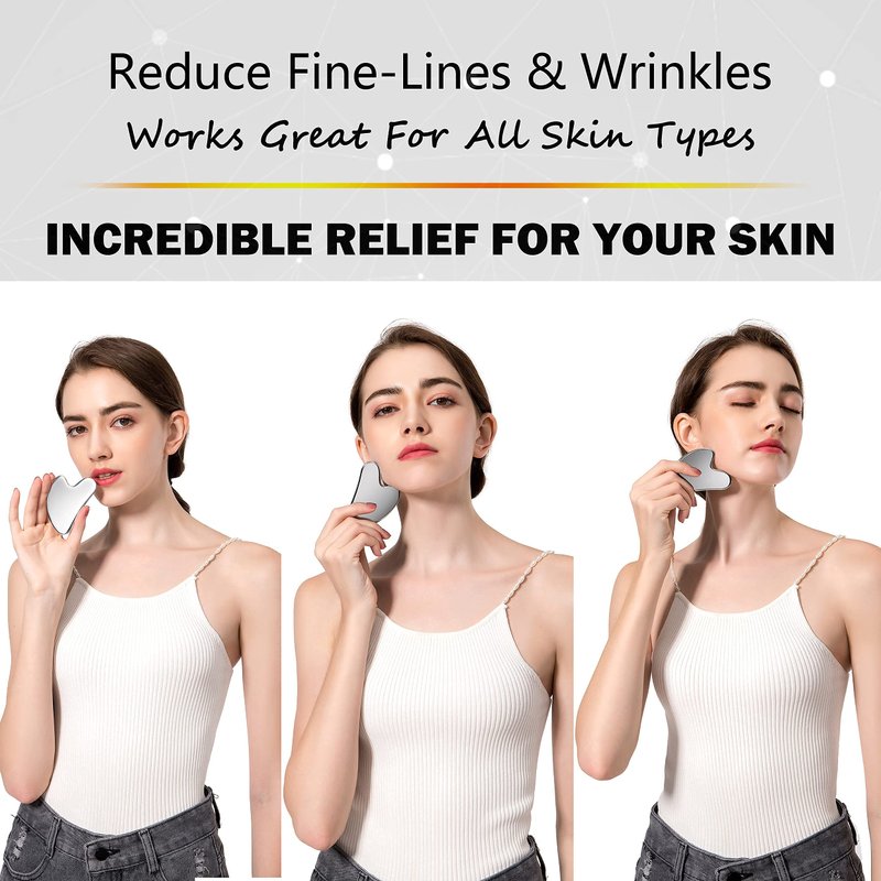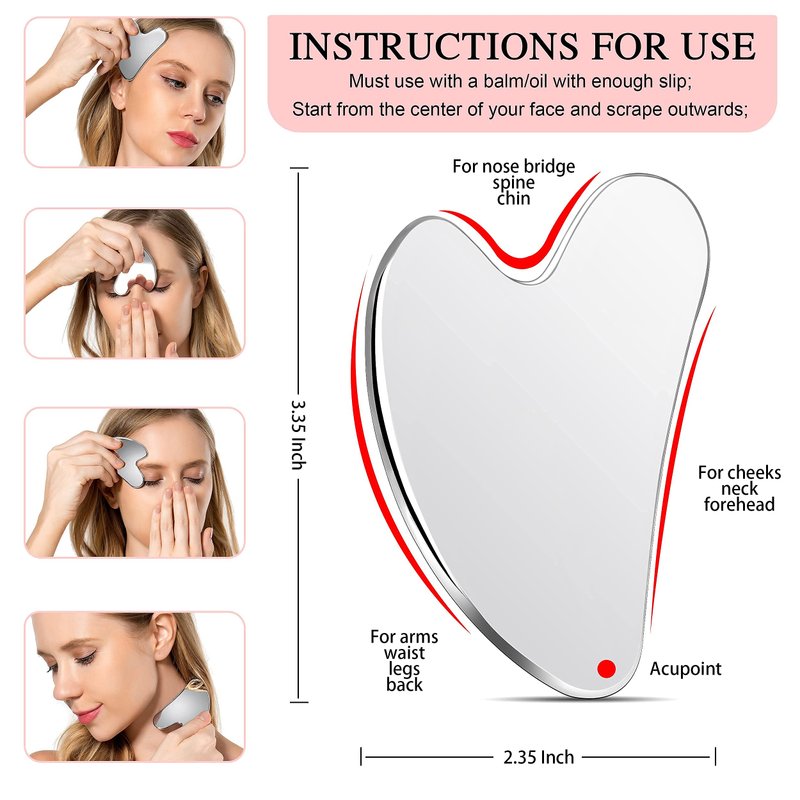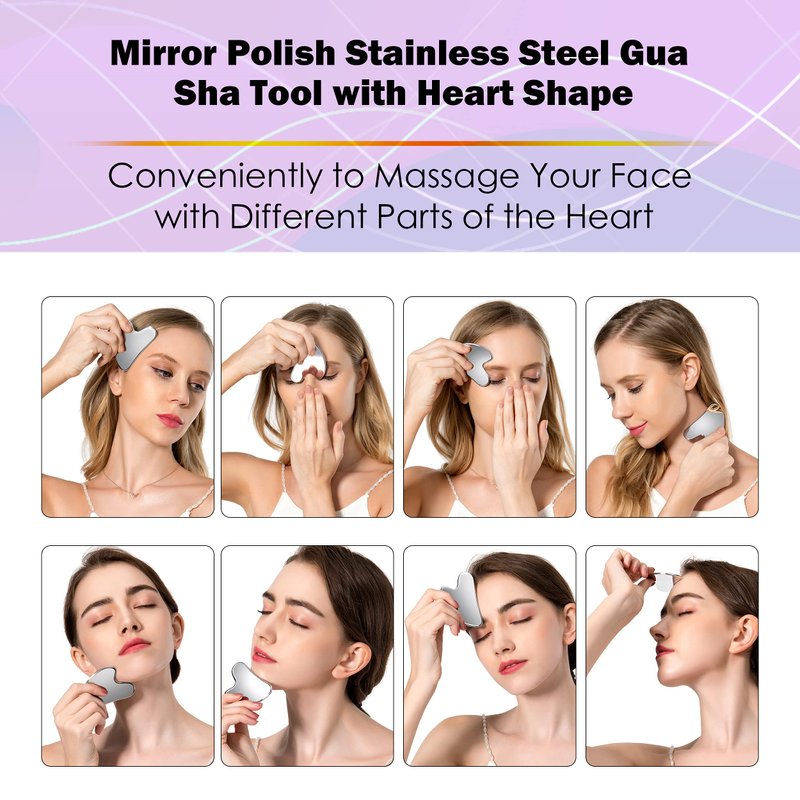 - 【Show Your Face Love】 This stainless steel gua sha tool can help you relax the surrounding muscles,helps to promote blood circulation, reduce puffiness, sculpt the jawline, nourish the skin, and relieve tension.