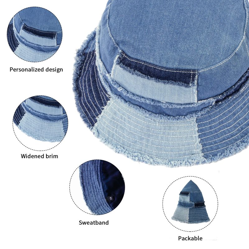 - PERFECT COLOR MATCH FOR EVERY STYLE – Designed for unisex our bucket hats come in various classic denim style to match your individuality. The bucket hat is packable and crushable, which is great for vocation, beach, travel, boating, park walking, hiking, gardening,shopping and so on.
