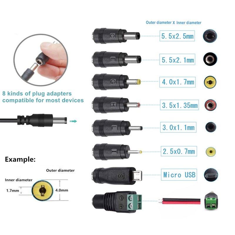 Universal AC Adapter 12V 2A Power Supply charger AC110V to DC12V 2000mA 1500mA 1000mA 500mA Power Driver 8 DC Plug Tips 12 volt Converter Inverter Transformer ac dc Adapter