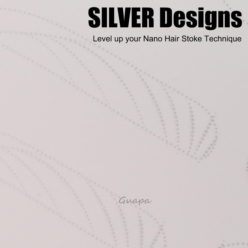 Guapa 2pcs Silicone Permanent Makeup Practice Skin Dual-Sided Brows Lips Brushing Tiny Tattoo Practice Skin with Design (White Skin Hairstrokes-Silver Outlines)