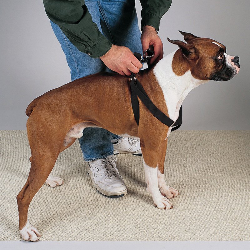 Guardian Gear Nylon 2-Step Dog Harness with Nickel-Plated Swivel Clip, Fits Chests 25" to 40", Black